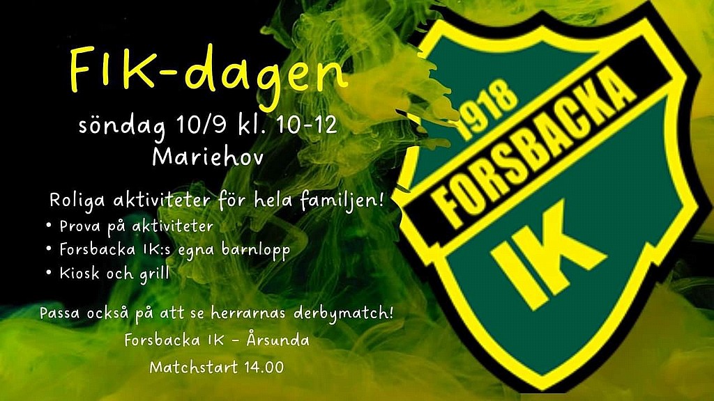 Söndag 10/9 kör vi FIK-dagen på Mariehov 10.00-12.00